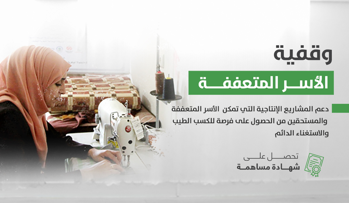 تهدف هذه الوقفية إلى إيجاد مورد دائم لدعم مشاريع للأسر المتعففة التي تعيش حالة من الحاجة بهدف تمكينهم ومساعدتهم وسد حاجاتهم.