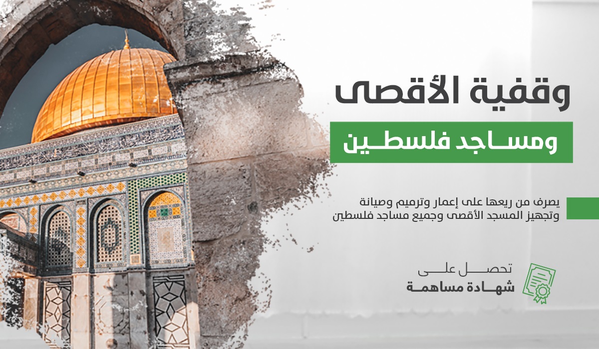 تهدف وقفية "المسجد الأقصى ومساجد فلسطين " إلى إيجاد مورد دائم للمساهمة في دعم مشاريع الاهتمام الصرف على إعمار مساجد أرض الإسراء وهو من أفضل الأعمال في الدنيا والآخرة. ويكفي المساهم فيها شرفاً أن سهمه يساعد في خدمة وإعمار بيوت الله في الأرض المباركة أرض الإسراء .